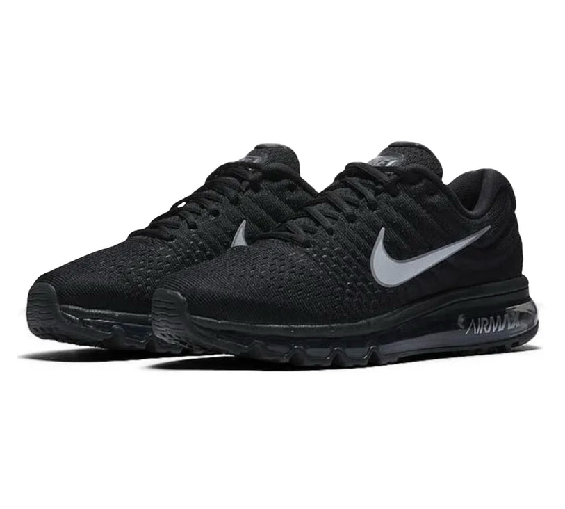 Nike Air Max 2017 'Triple Black' Men's The Nike Air Max 2017 debuted at retailers 30 years after the original Air Max 1 hit retailers in 1987. A seamless Flymesh upper features reinforced underlays on the heel and midfoot. Details include perforations on the toe, extra padding at the heel, and Swooshes stamped on each side panel....