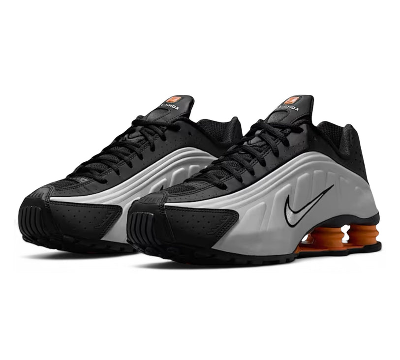 Nike Shox R4 'Black/Grey/Mandarin' Men's A recrafted version of the early 2000s icon, the Nike Shox R4 replicates the original with its futuristic design lines and performance-like cushioning. Nike Shox columns in the heel distribute weight to maximise comfort while providing a bold look on the streets. In Hand And Ready To Ship 100% Authentic...