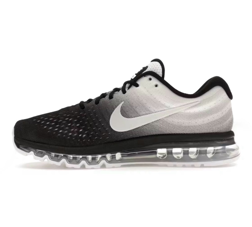 The Nike Air Max 2017 debuted at retailers 30 years after the original Air Max 1 hit retailers in 1987. A seamless Flymesh upper features reinforced underlays on the heel and midfoot. Details include perforations on the toe, extra padding at the heel, and Swooshes stamped on each side panel. The lightweight upper sits atop Cushlon foam and a full-length Air Max unit for maximum comfort during runs or casual wear.