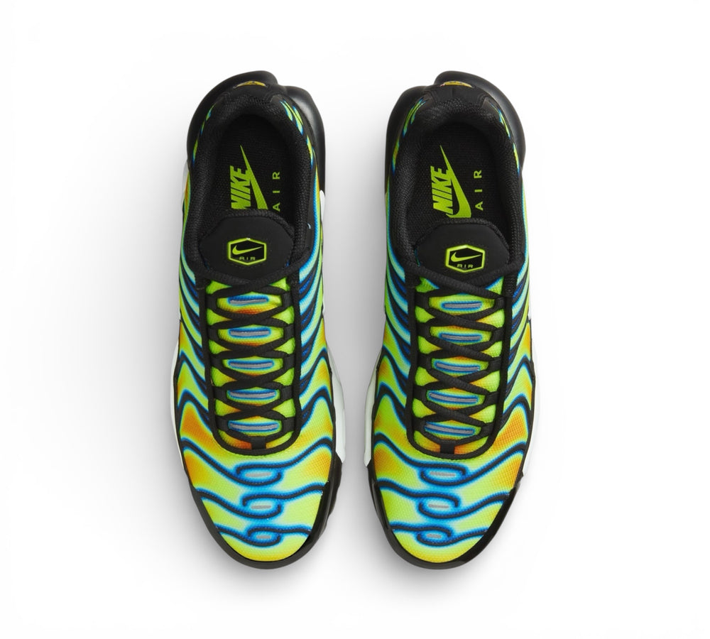 The Nike Air Max Plus TN 'Heat Map' gives you a tuned Nike Air experience that offers premium stability and unbelievable cushioning. Let your attitude have the edge with flame-like caging that adds heat to the streets while airy mesh keeps you cool.